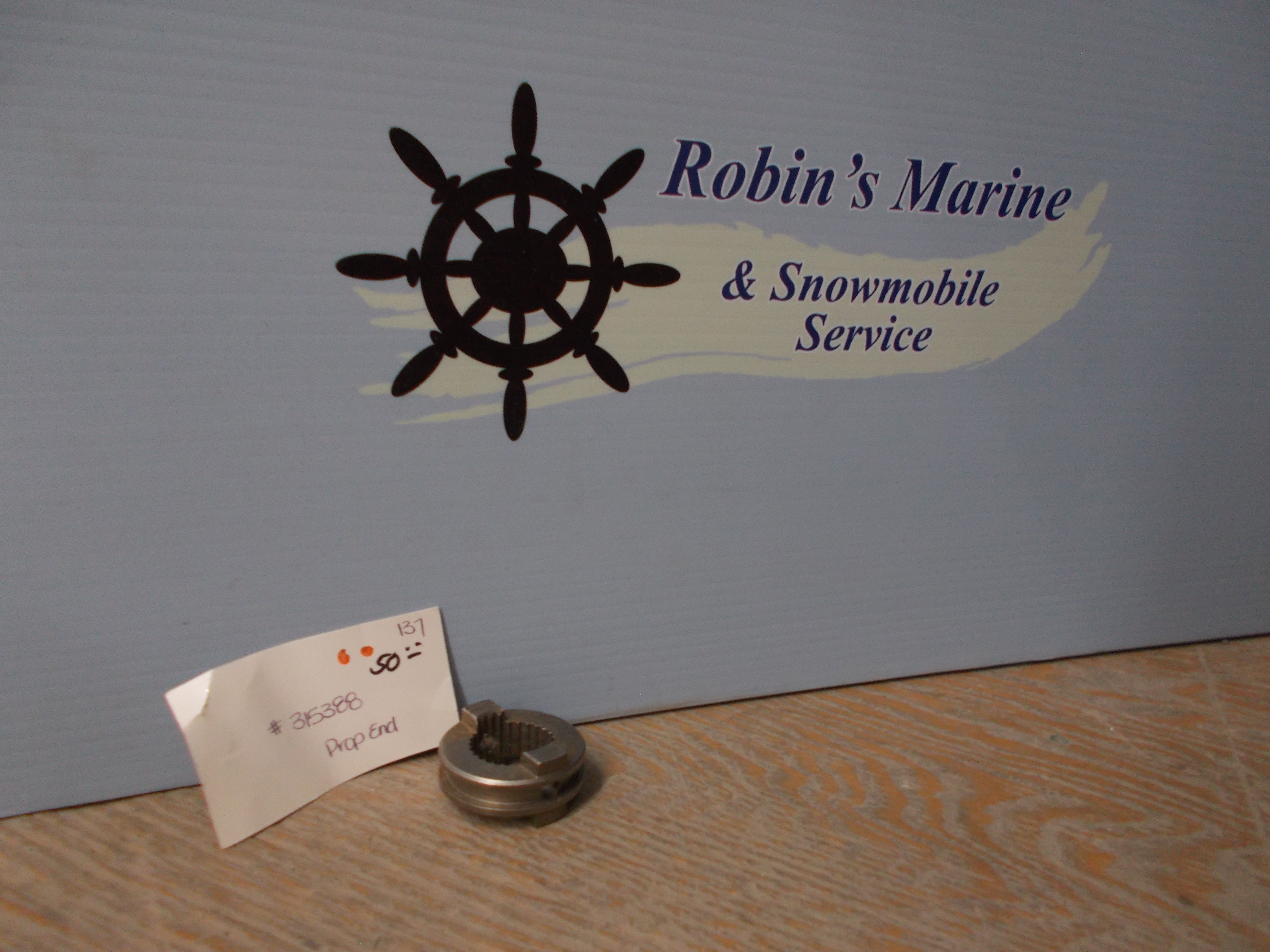 Prop End 315388 "Robin's Marine" - is backordered and will ship as soon as it is back in stock.
